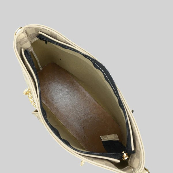 This stylish tote is a must-have for women who value convenience without compromising on elegance. The Camel Checkered Tote adds a polished finishing touch to any outfit.
